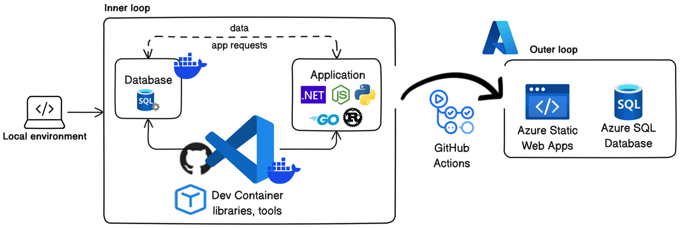 Local development with dev containers reduces cloud costs associated with development and testing in Azure environments. This optimization of resources improves cost-efficiency and scalability. Developers can transition seamlessly from local development to Azure environments, using the scalability and reliability of Azure SQL Database for production deployments without incurring unnecessary costs.