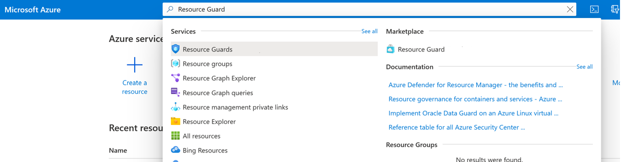 In the Azure portal, go to the directory under which you want to create the Resource Guard.