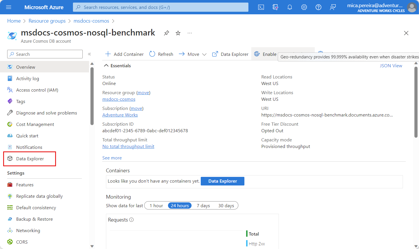 Navigate to your existing API for NoSQL account in the Azure portal.