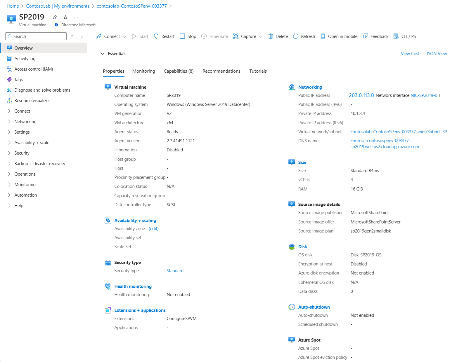 When the environment is ready, you can expand the environment in the My environments list to see the VMs the template provisioned.