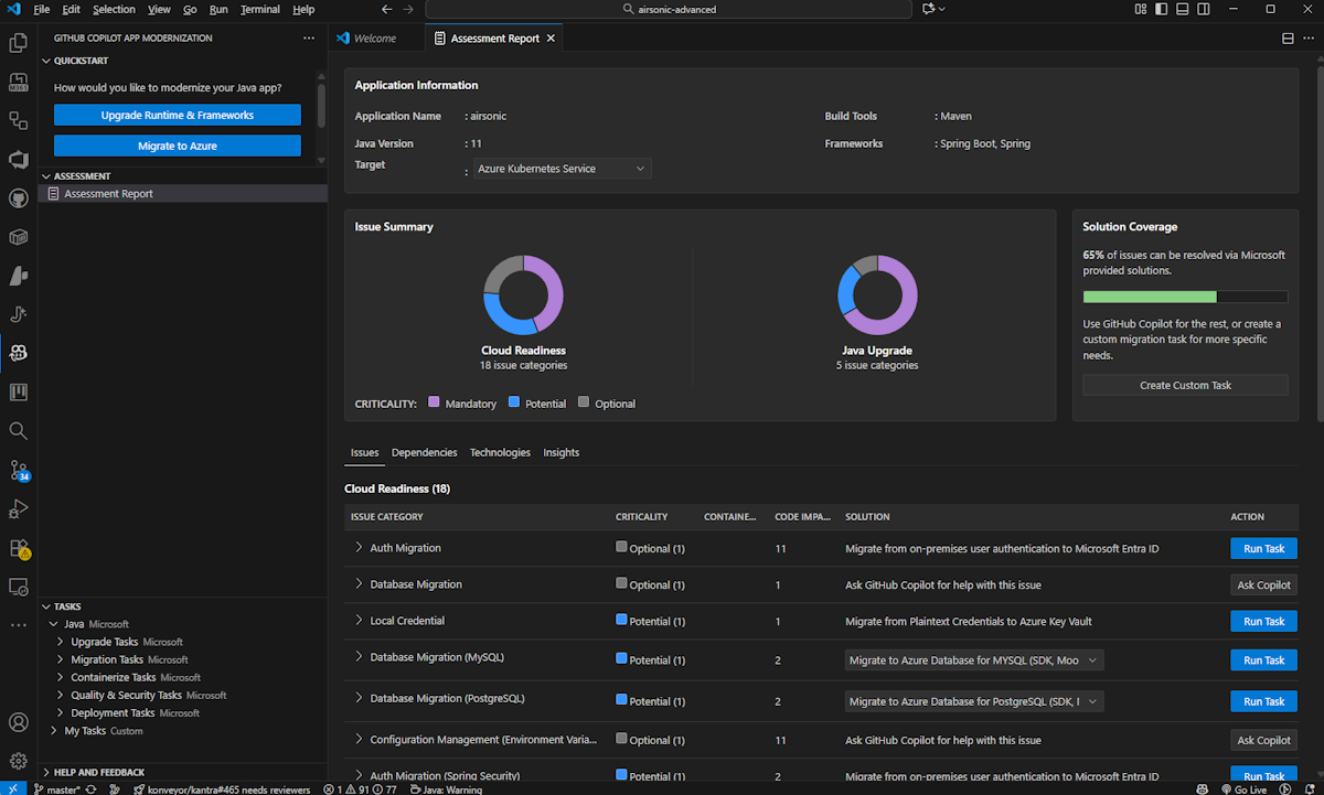 This comprehensive guide covers advanced assessment capabilities in GitHub Copilot modernization to help you maximize the value of your application modernization assessment process.