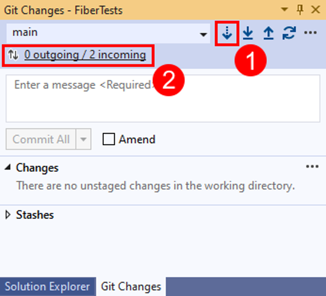 In the Git Changes window, choose Pull.