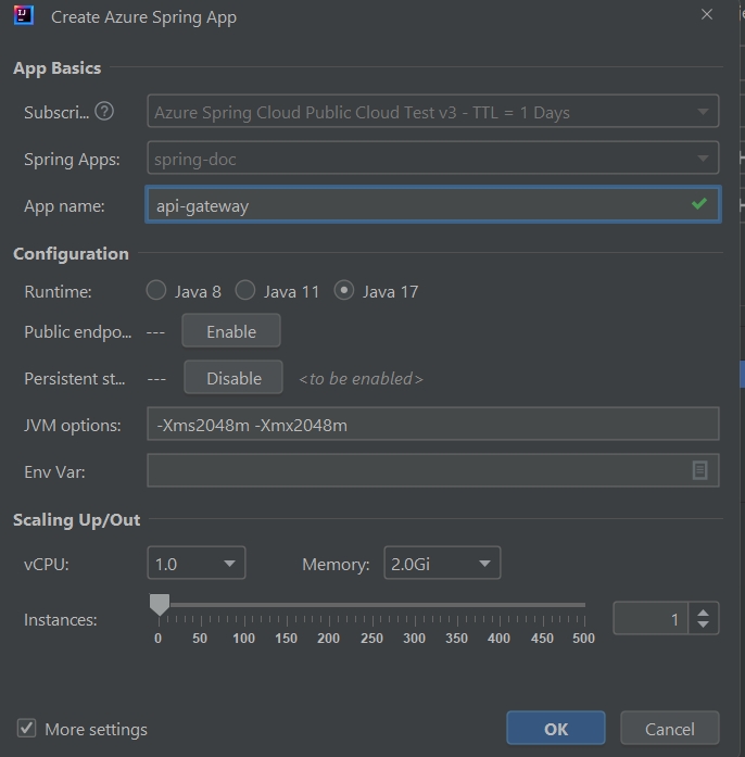 api-gateway        eastus      xxxxxx-sp         default                  https://<service name>-api-gateway.azuremicroservices.io   Succeeded              1      2         1/1                 1/1                    -