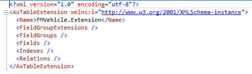 In Solution Explorer, right-click FMVehicle.Extension, and then select Open with. In the dialog box, select XML (Text) Editor, and then select OK. Note: This extension file is simply a template that doesn't contain metadata from the base FMVehicle table. An extension file will always contain only the metadata that defines the extension and nothing from the base model element.