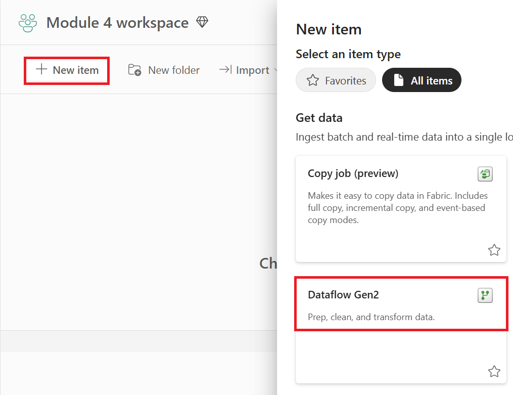 Opret et nyt Dataflow Gen2 i dit arbejdsområde.