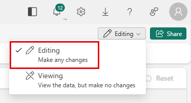 Sørg for, at du er i redigeringstilstand i dashboardet, før du begynder på de følgende trin. Hvis du ikke er i Redigeringstilstand , kan du skifte fra Visning øverst til højre på dashboardet.