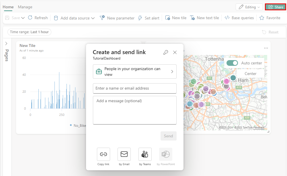 Når du deler et realtidsdashboard, kan du angive, om brugeren kan se, redigere eller dele. Disse tilladelser gælder for selve realtidsdashboardet og ikke for de underliggende data.