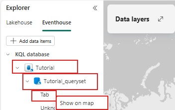 I ruden Stifinder skal du vælge Eventhouse og vælge + Tilføj dataelementer og vælge Tutorial eventhouse.
