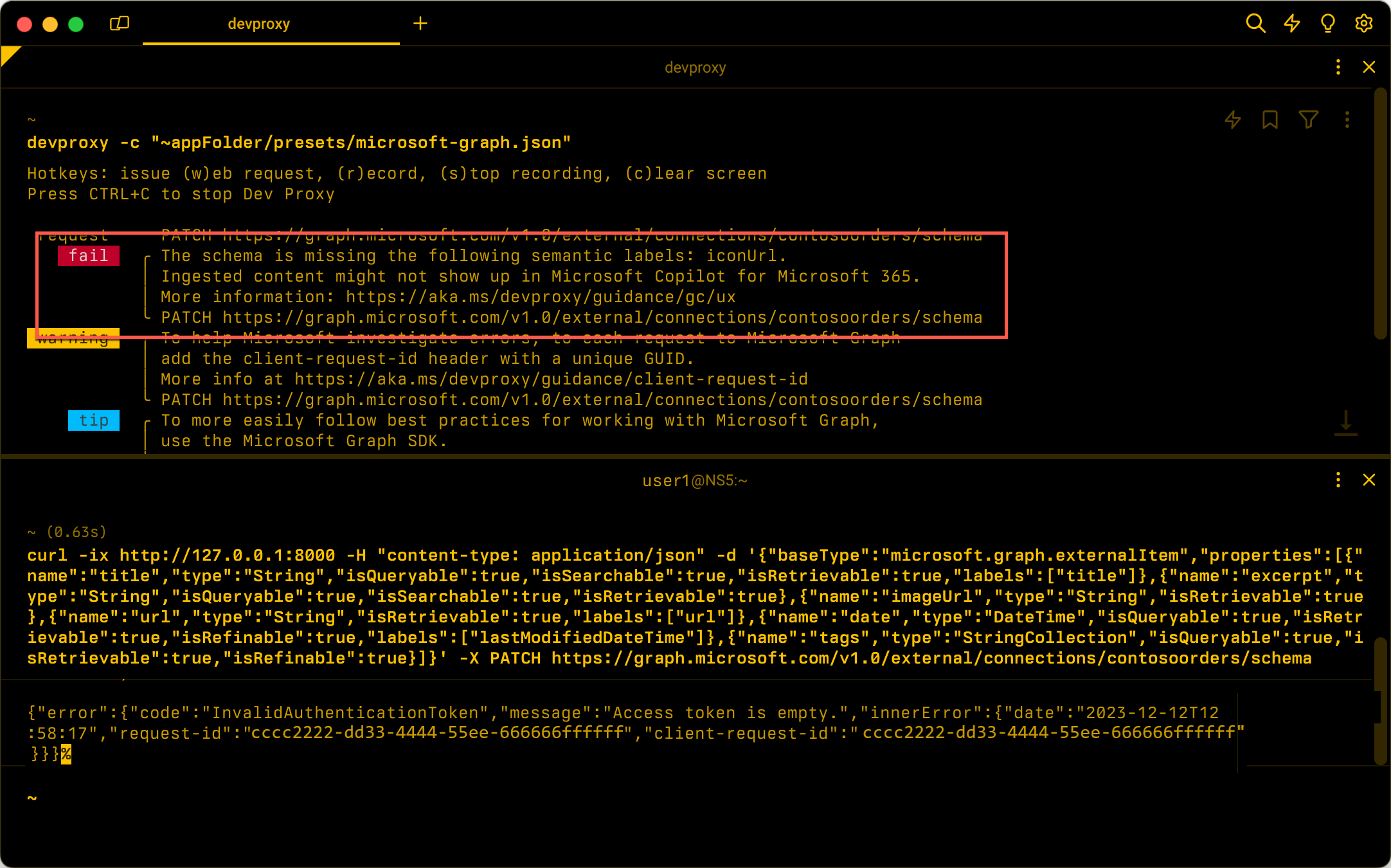 | Schema missing one or more semantic labels required for Microsoft Copilot for Microsoft 365 | PATCH https://graph.microsoft.com/v1.0/external/connections/{id}/schema |