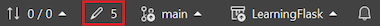 2. On the Git controls bar, select the uncommitted changes (pencil 5) to open the Git Changes window: