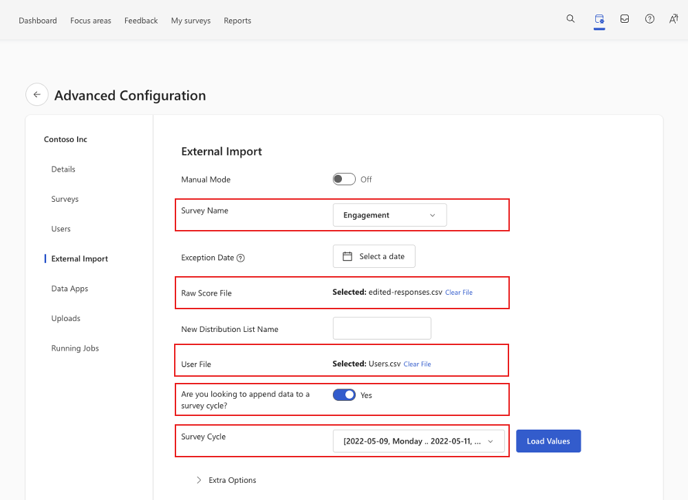 To complete your import of edited responses, access Viva Glint’s Advanced configuration page. If you don't have access, confirm that: