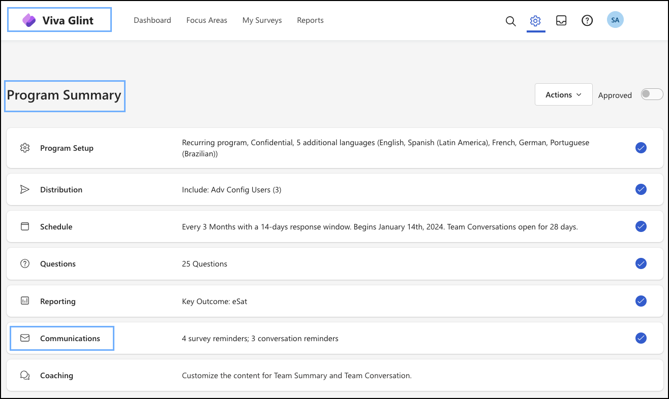 When Microsoft Teams is enabled for Viva Glint notifications, choose to send survey invites and reminders in emails or also in Microsoft Teams.