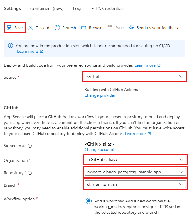 - Bereitstellen einer Python-Beispiel-App in App Service aus einem GitHub-Repository