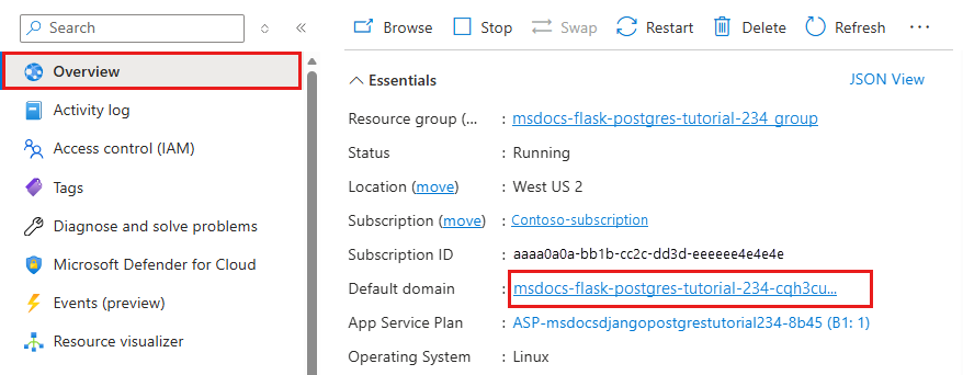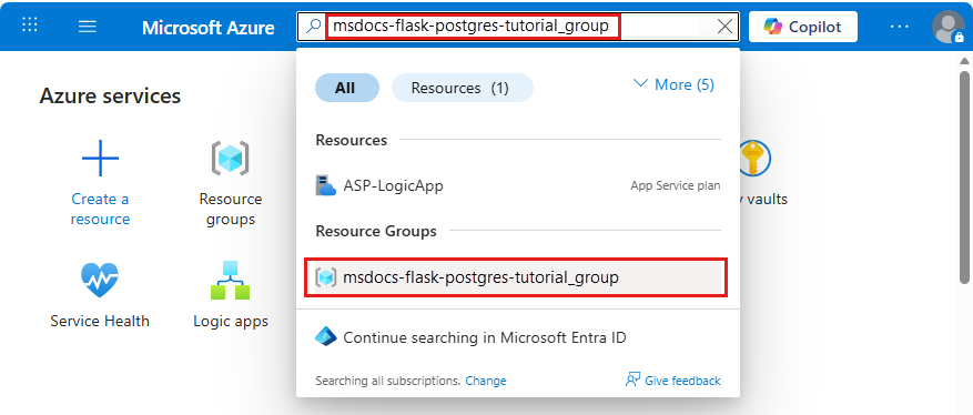 - Wählen Sie in der Ressourcengruppemsdocs-python-postgres-tutorial aus.