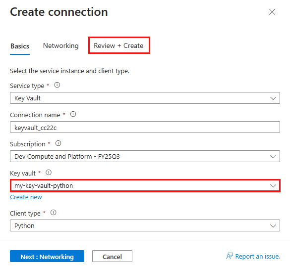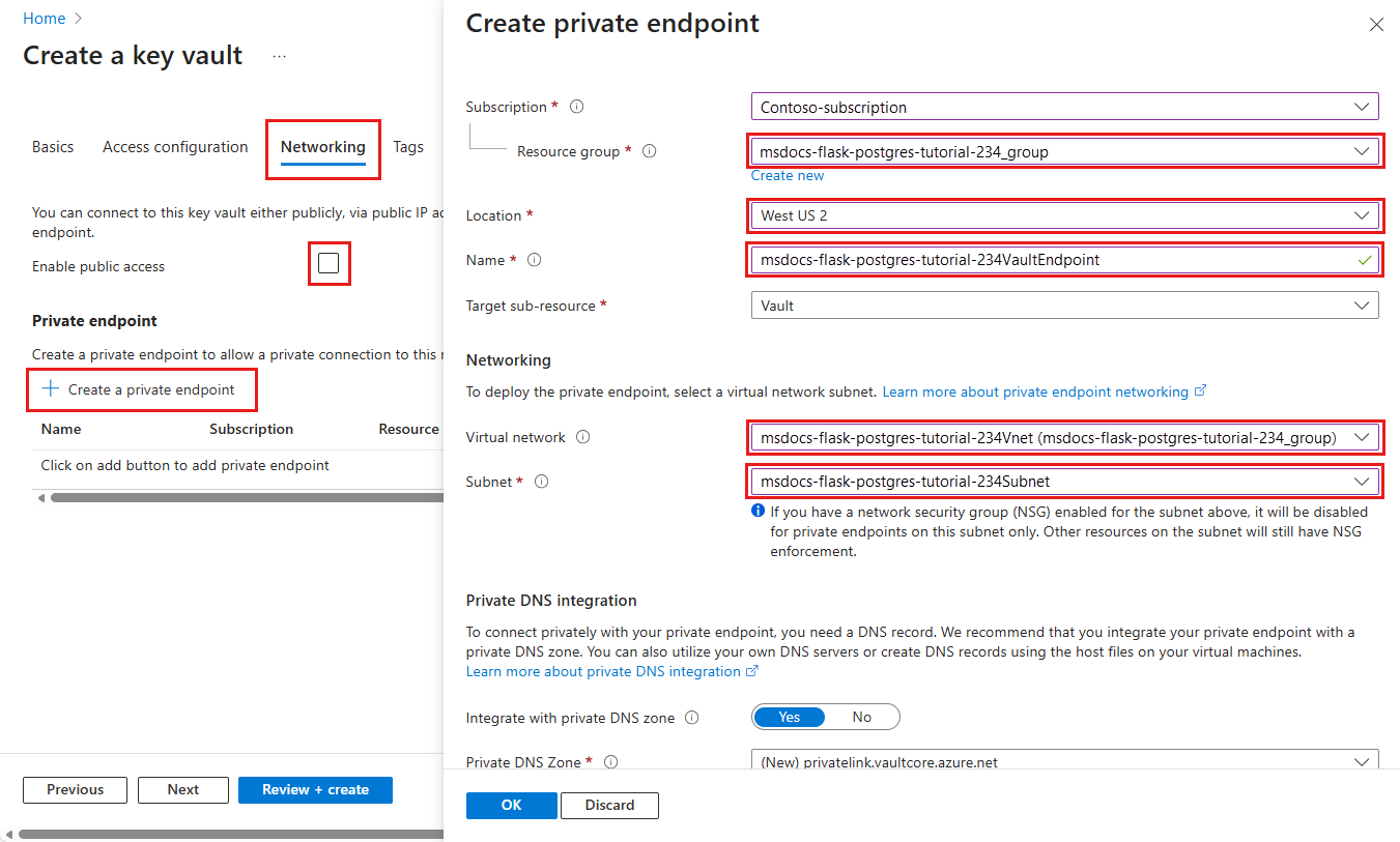 - Geben Sie unter Name die Zeichenfolge msdocs-python-postgres-XYZVaultEndpoint ein.