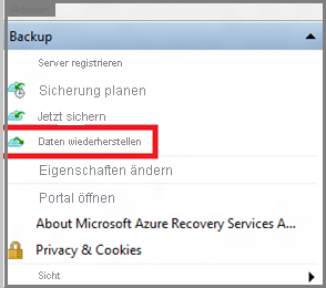 Wählen Sie im Assistenten im Bereich Aktionen der Agent-Konsole die Option Daten wiederherstellen aus, um den Assistenten Daten wiederherstellen zu starten.