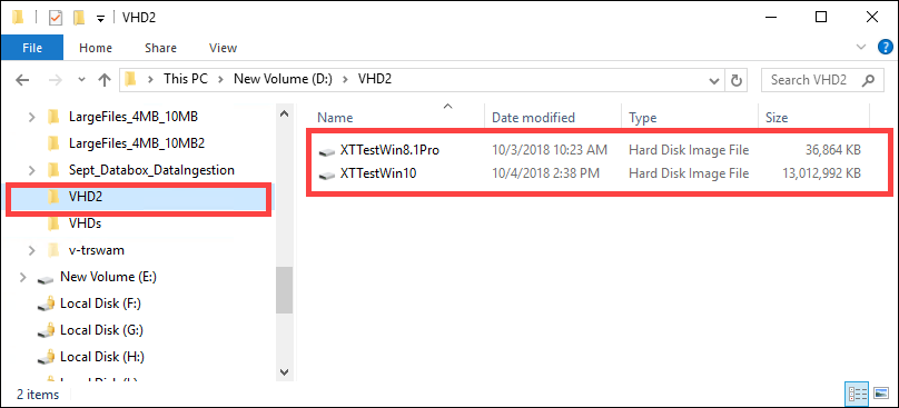 Kopieren Sie die VHDs immer in einen der vorab erstellten Ordner. VHDs, die außerhalb dieser Ordner oder in einem von Ihnen erstellten Ordner platziert werden, werden nicht als verwaltete Datenträger, sondern als Seitenblobs in Azure Storage-Konten hochgeladen.