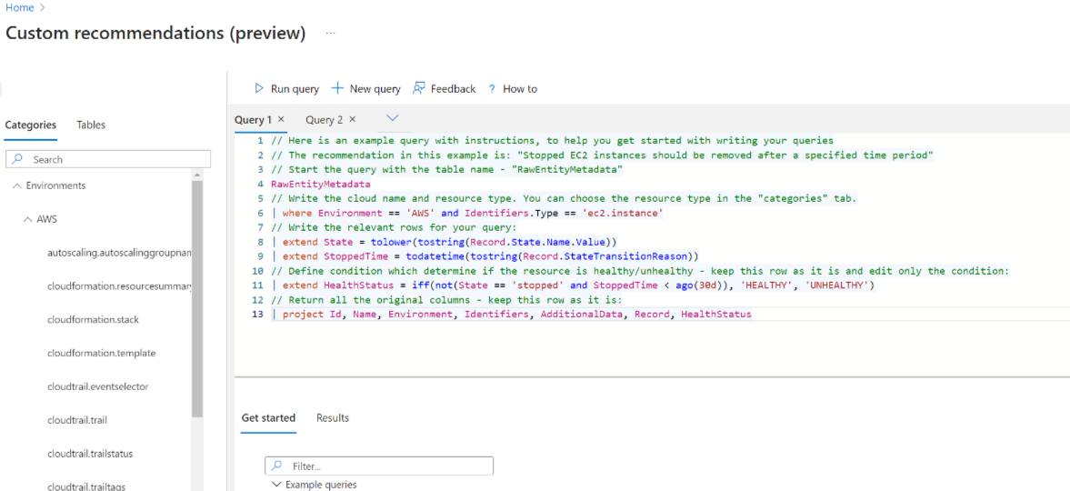 - Erstellen Sie benutzerdefinierte Empfehlungen für alle Clouds (Azure, AWS und GCP) mit einer KQL-Abfrage.