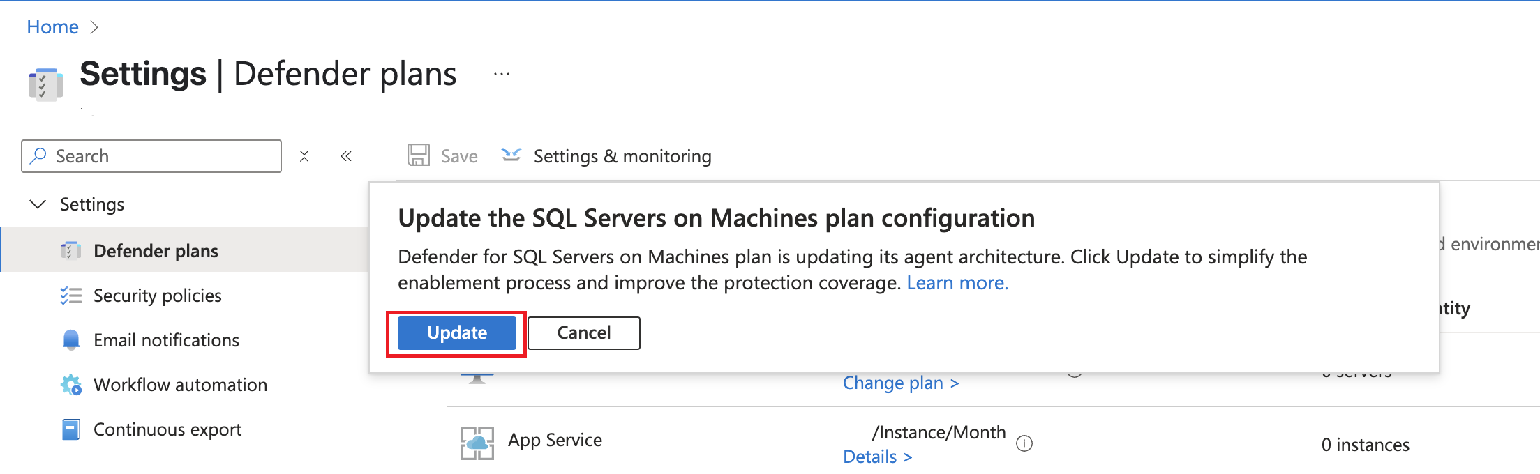 Der Plan von Defender für SQL-Server auf Computern befindet sich im Übergang zur neuen Agentarchitektur. Weitere Informationen finden Sie unter Defender für SQL-Server auf Computern: Planübergang.