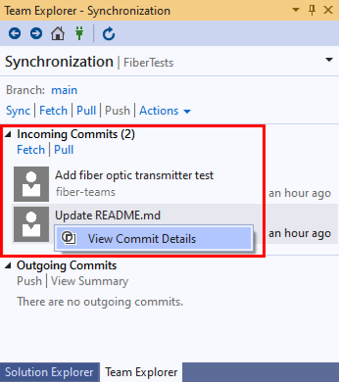Visual Studio 2022 bietet eine Git-Versionskontrolle mithilfe des Git-Menüs , Git-Änderungen und über Kontextmenüs im Projektmappen-Explorer. Visual Studio 2019, Version 16.8, bietet auch die Git-Benutzeroberfläche des Team Explorers . Weitere Informationen finden Sie auf der Registerkarte "Visual Studio 2019 – Team Explorer ".