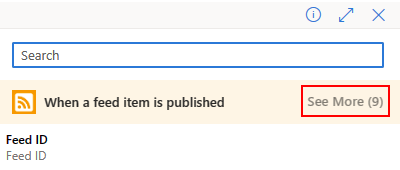 Wenn keine Ergebnisse unter Beim Veröffentlichen eines Feedelements verfügbar sind, wählen Sie Mehr anzeigen aus.