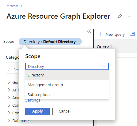 In der Regel legen Sie den Bereich auf Verzeichnis fest, um Ihren gesamten Mandanten abzufragen. Der Bereich kann allerdings auch auf bestimmte Abonnements beschränkt werden.