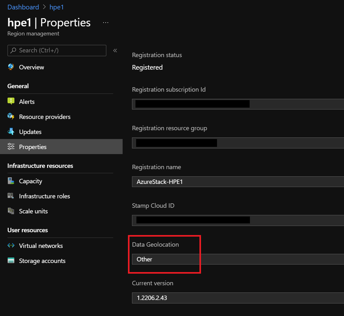 Ab Version 2206 können Sie Ihre geografische Präferenz für die Datenverarbeitung in vorhandenen Azure Stack Hub-Bereitstellungen auswählen. Nach dem Herunterladen des Hotfix erhalten Sie die folgende Warnung: