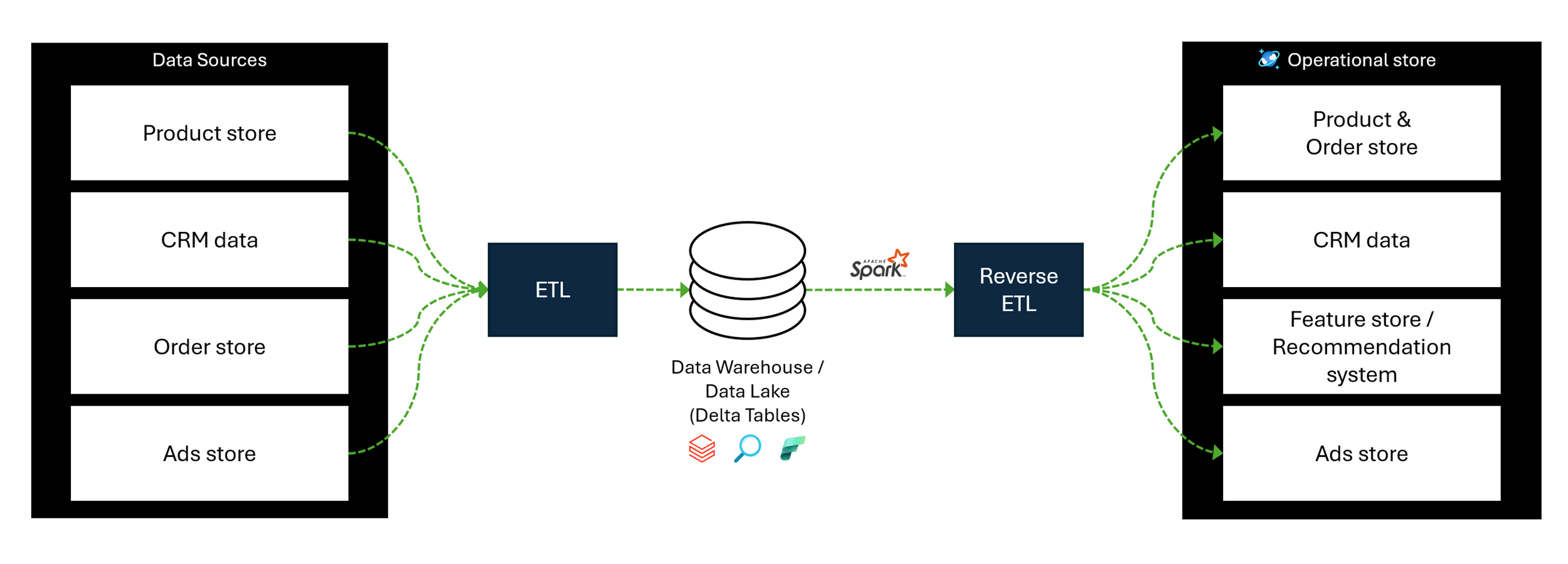 Cloud Data Warehouses und Data Lakes bereichern Daten, zentralisieren Informationen und ermöglichen leistungsstarke Analysen. Der echte Wert der Daten liegt jedoch darin, Einblicke in reale Entscheidungen und Kundenerfahrungen zu verwandeln. Um dieses Ziel zu erreichen, müssen saubere, zuverlässige Daten aus dem Lager/ Datenseen in Betriebssysteme verschoben werden. Reverse ETL verschiebt Daten aus Ihrer Data Warehouse-Ebene, z. B. Delta Lake in Azure Databricks oder Microsoft Fabric, wieder in Betriebssysteme. Mit diesem Migrationsschritt können nachgeschaltete Apps die neuesten, erweiterten Daten für Echtzeit-Betriebsanalysen verwenden. Reverse ETL spielt eine entscheidende Rolle bei der Ausschöpfung des vollen Potenzials Ihrer Datenvermögenswerte, indem sie die Lücke zwischen Analysen und Vorgängen überbrückt und bessere Entscheidungen ermöglicht.