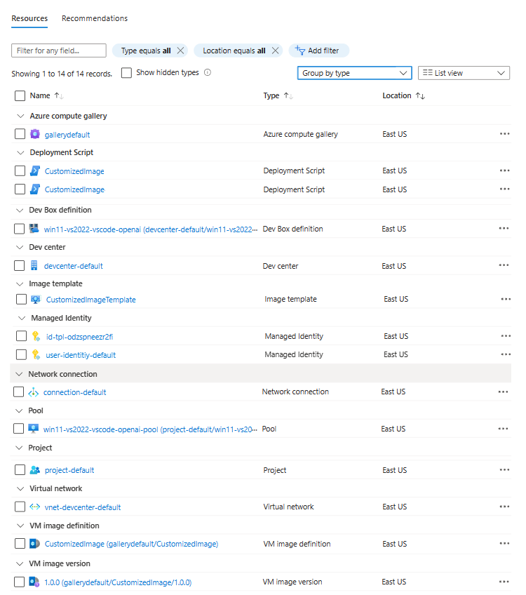 - Microsoft.DevCenter/devcenters/devboxdefinitions: Erstellen einer Dev Box-Definition.