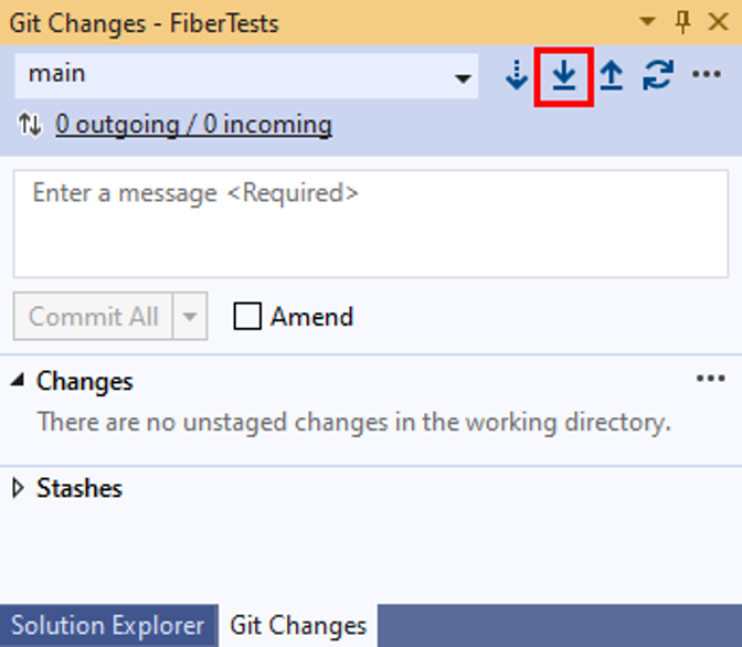 Wählen Sie im Fenster "Git-Änderungen " die Option "Pull" aus.