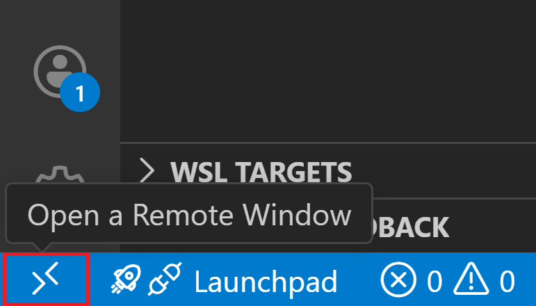 Wählen Sie die Schaltfläche " Remotefenster öffnen " in VS Code aus.