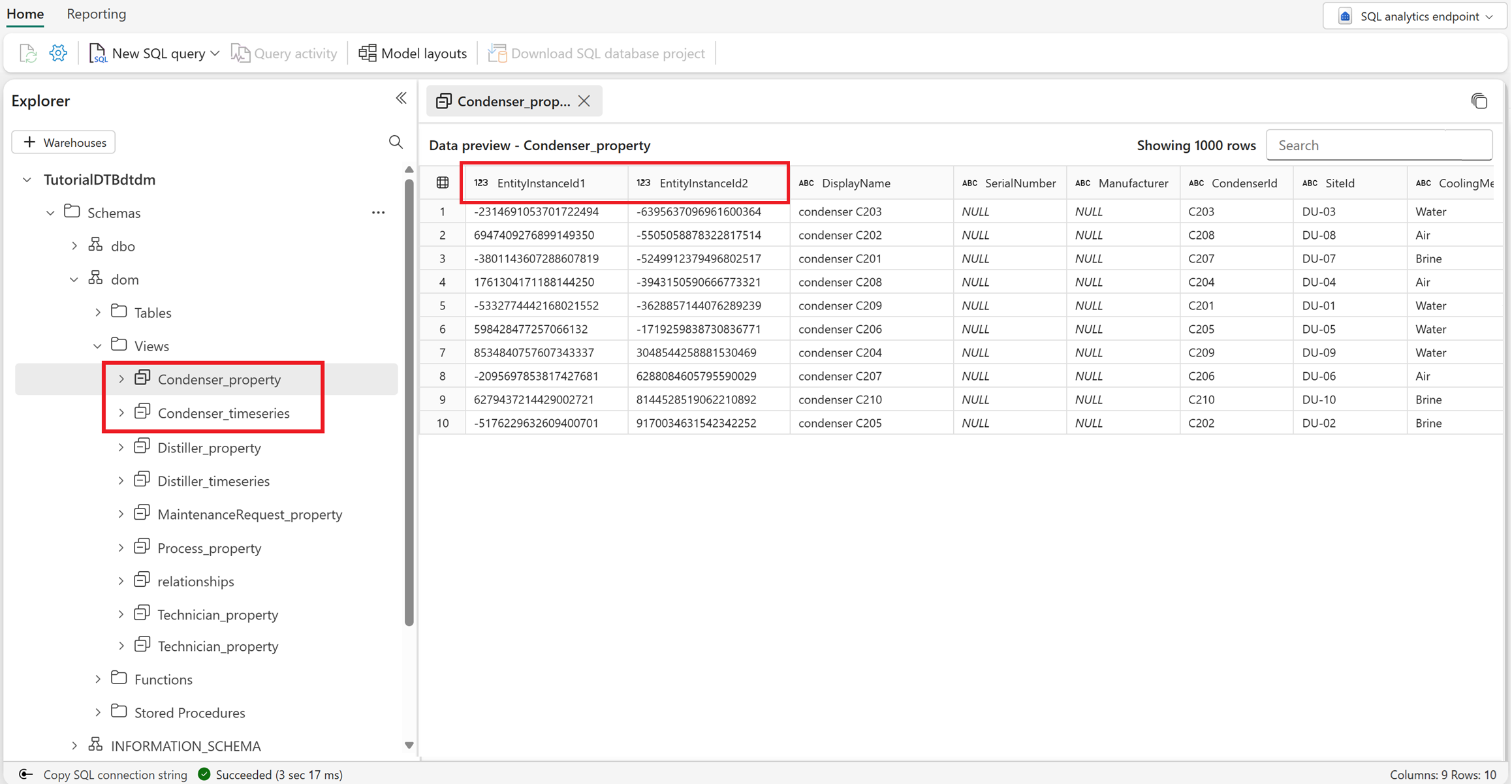 FirstEntityInstanceId1undFirstEntityInstanceId2) und einer Zielentitätsinstanz (identifiziert durch die Kombination vonSecondEntityInstanceId1undSecondEntityInstanceId2) verweist. - Es gibt keine Ansicht für Reboiler_property oder Reboiler_timeseries, da Sie den Entitätstyp Reboiler deaktiviert haben.