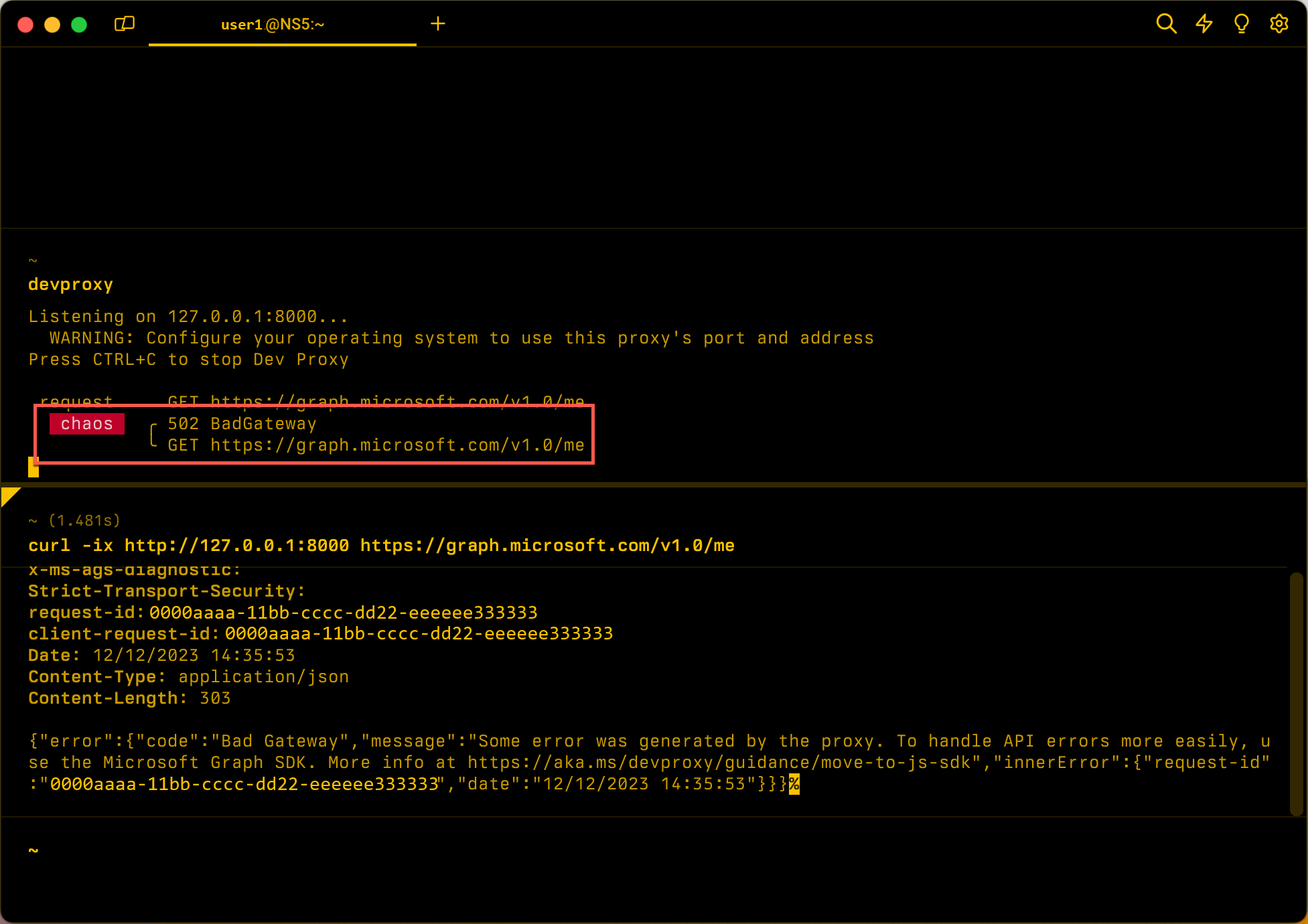 Liste der HTTP-Statuscodes, die von Dev Proxy erzeugt werden können. | 429 500 502 503 504 507 |