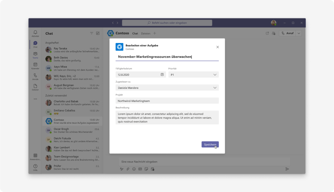 Sie können modale Popupfunktionen in Ihrer Teams-App mit Dialogen (in TeamsJS v1.x als Aufgabenmodule bezeichnet) erstellen. Verwenden Sie diese Funktion, um Rich-Media und Informationen anzuzeigen, oder eine komplexe Aufgabe abzuschließen.
