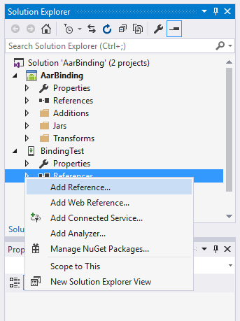 Um diese DLL in der Xamarin.Android-App zu verwenden, müssen Sie zuerst einen Verweis auf die Bindungsbibliothek hinzufügen. Führen Sie die folgenden Schritte durch: