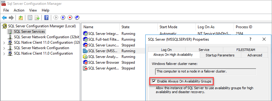 Nachdem Sie Verfügbarkeitsgruppen aktiviert haben, starten Sie SQL Server neu.