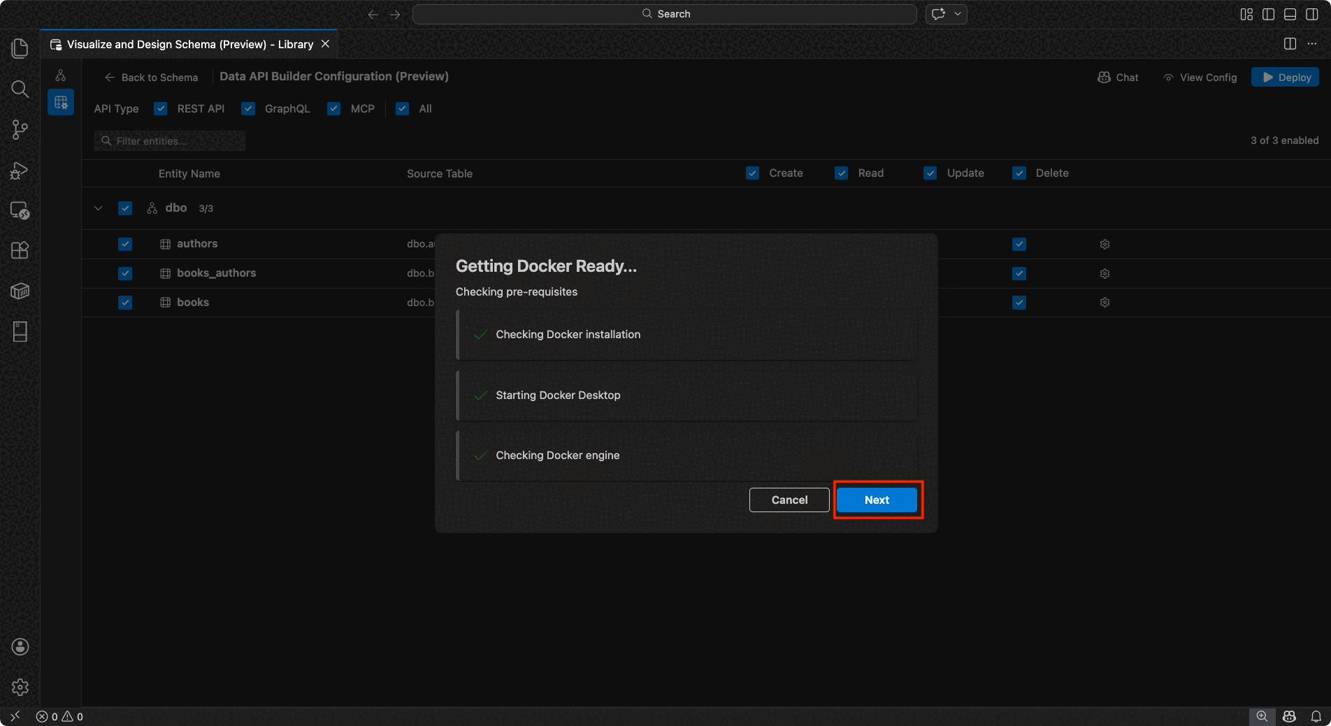 - Stellen Sie Data API builder lokal als Docker-Container mit automatisierten Prüfungen der Voraussetzungen bereit.