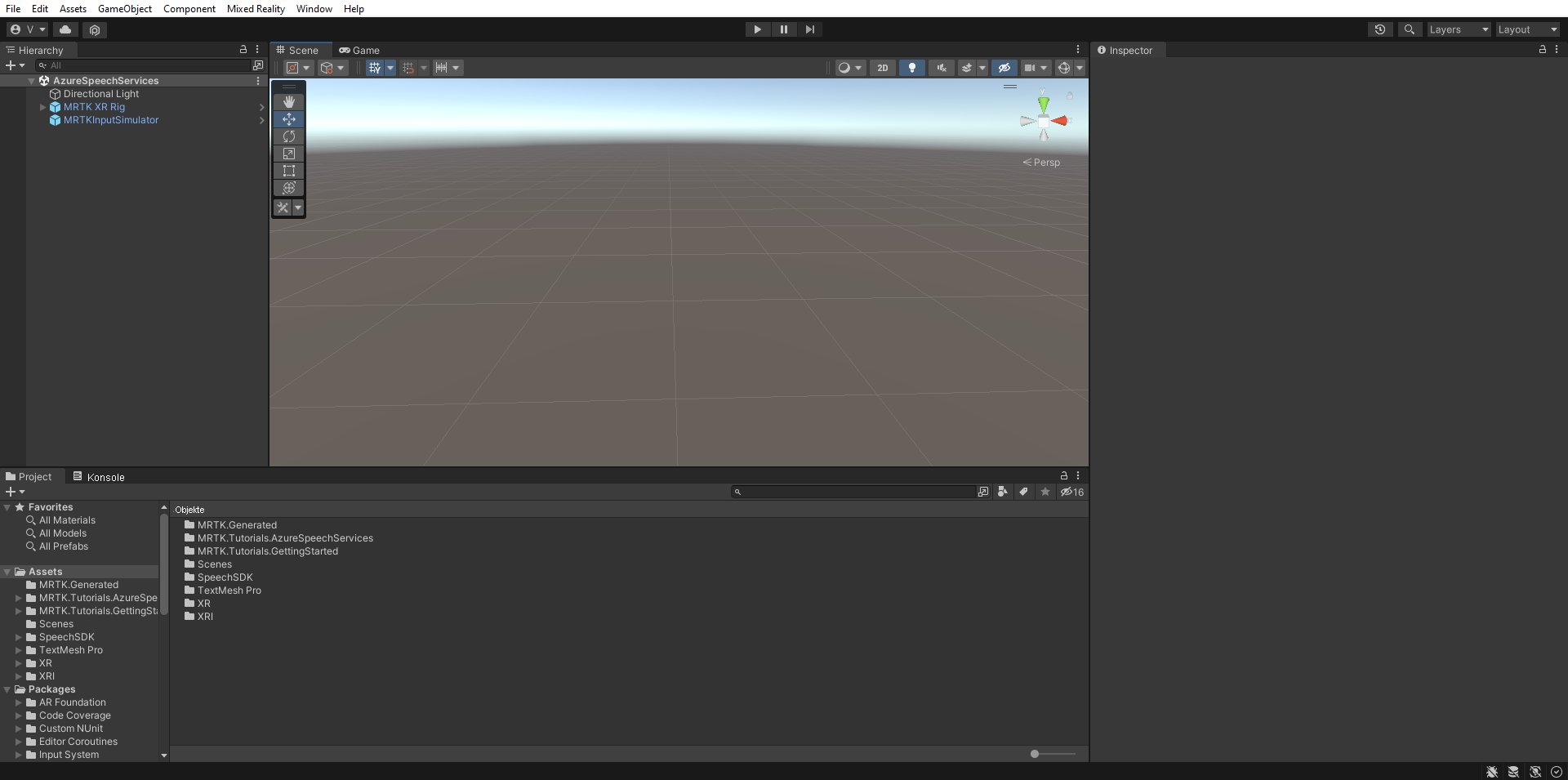 - Erstellen und Konfigurieren der Szene und Geben sie einen geeigneten Namen; Beispiel: AzureSpeechServices