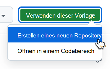 Wählen Sie die Dropdownliste Use this template (Diese Vorlage verwenden ) und dann im Menü Create a new repository (Neues Repository erstellen) aus.