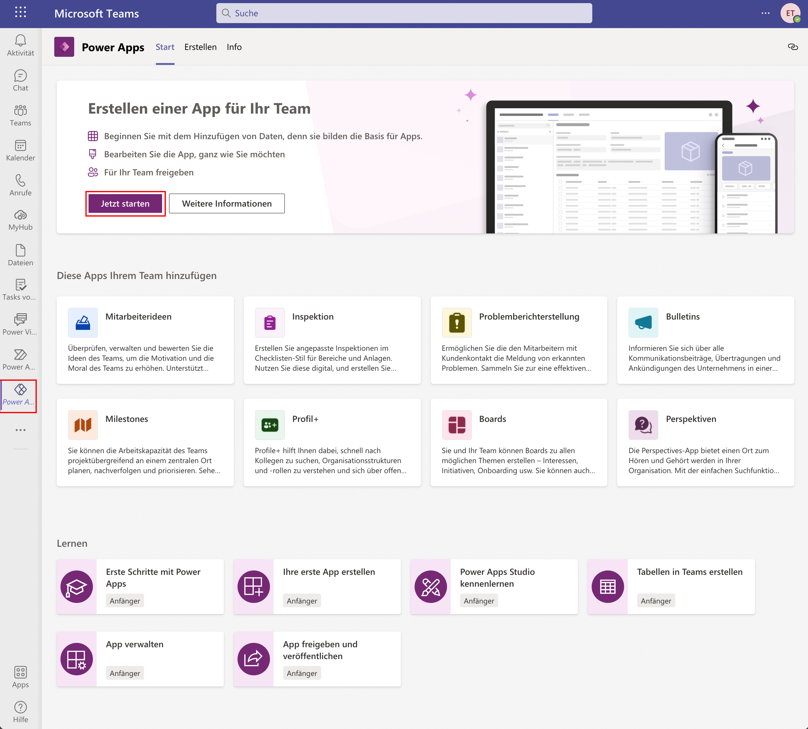Power Apps in Teams installieren