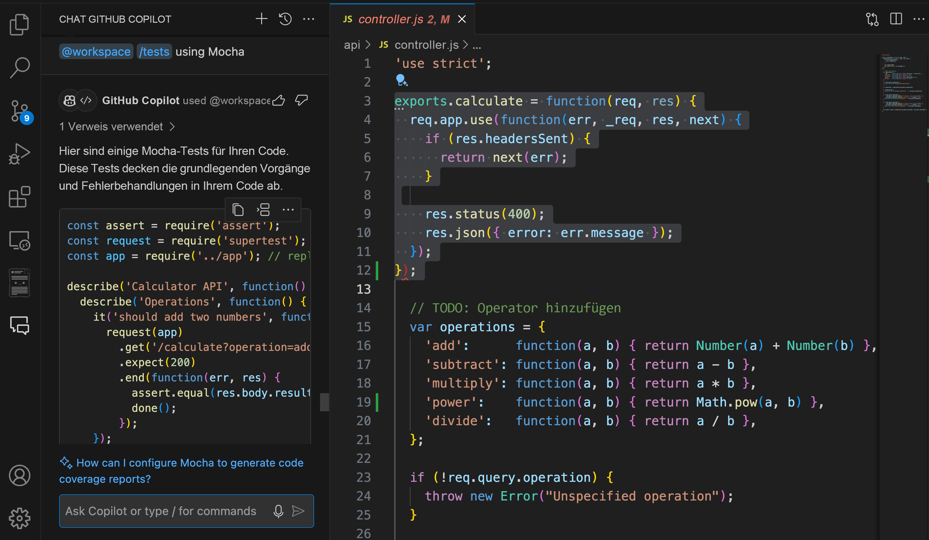 /optimize thecalculatemethod in controller.jsz. B. darauf, die Leistung dieser speziellen Methode zu verbessern./tests: Erstellt automatisch Komponententests für den ausgewählten Code. Sie können den Code einfach hervorheben und