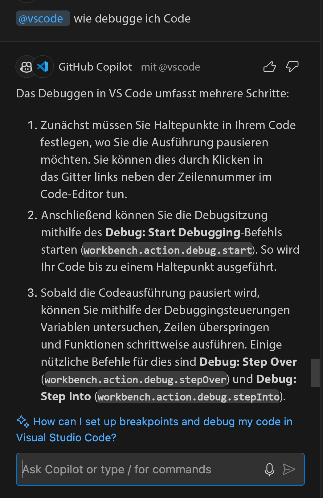 - Debuggen mit GitHub Copilot Chat