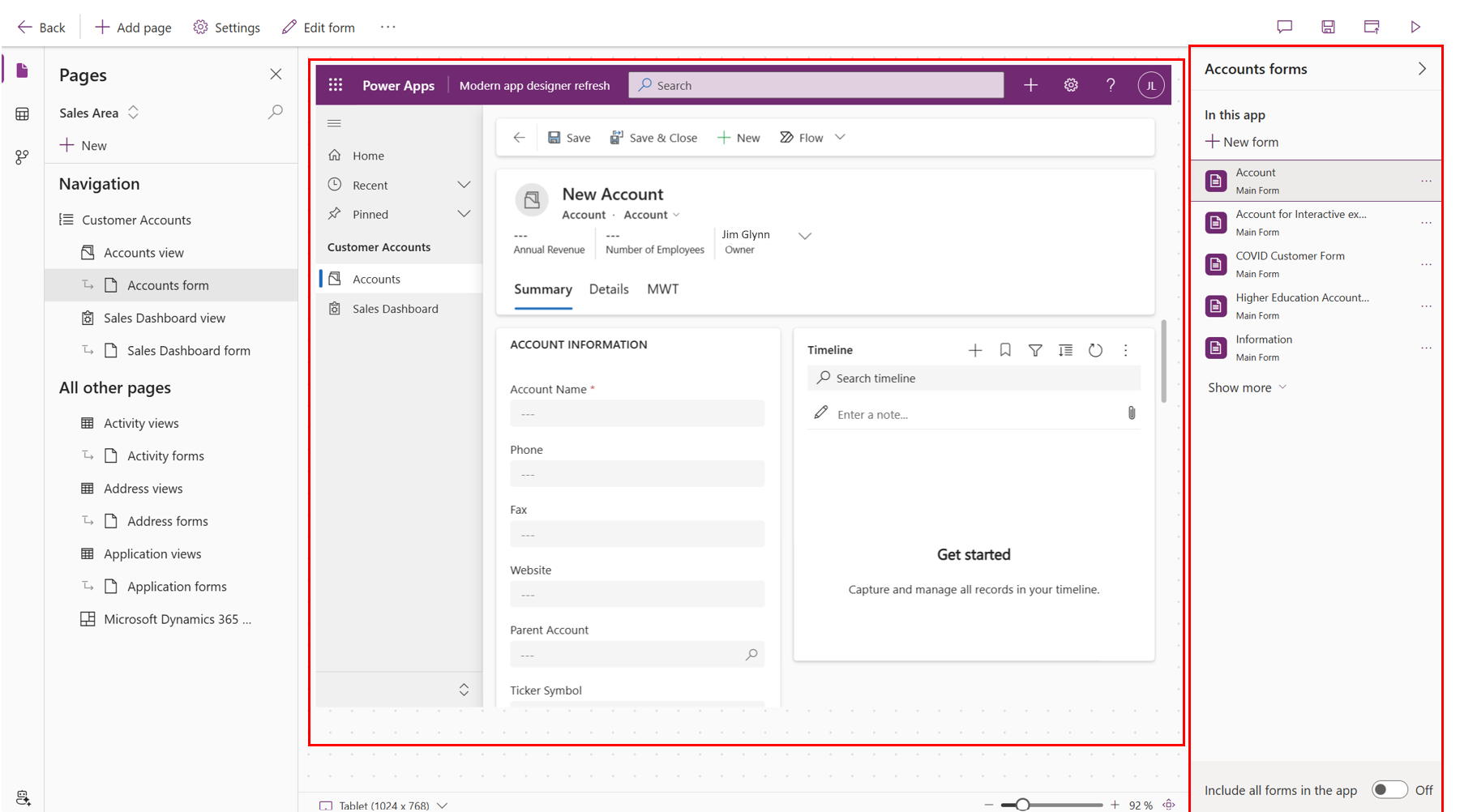 Wie bereits erwähnt, besteht eine modellgesteuerte App aus drei Komponenten: Anwendungen (Apps), Bereichen und Tabellen.