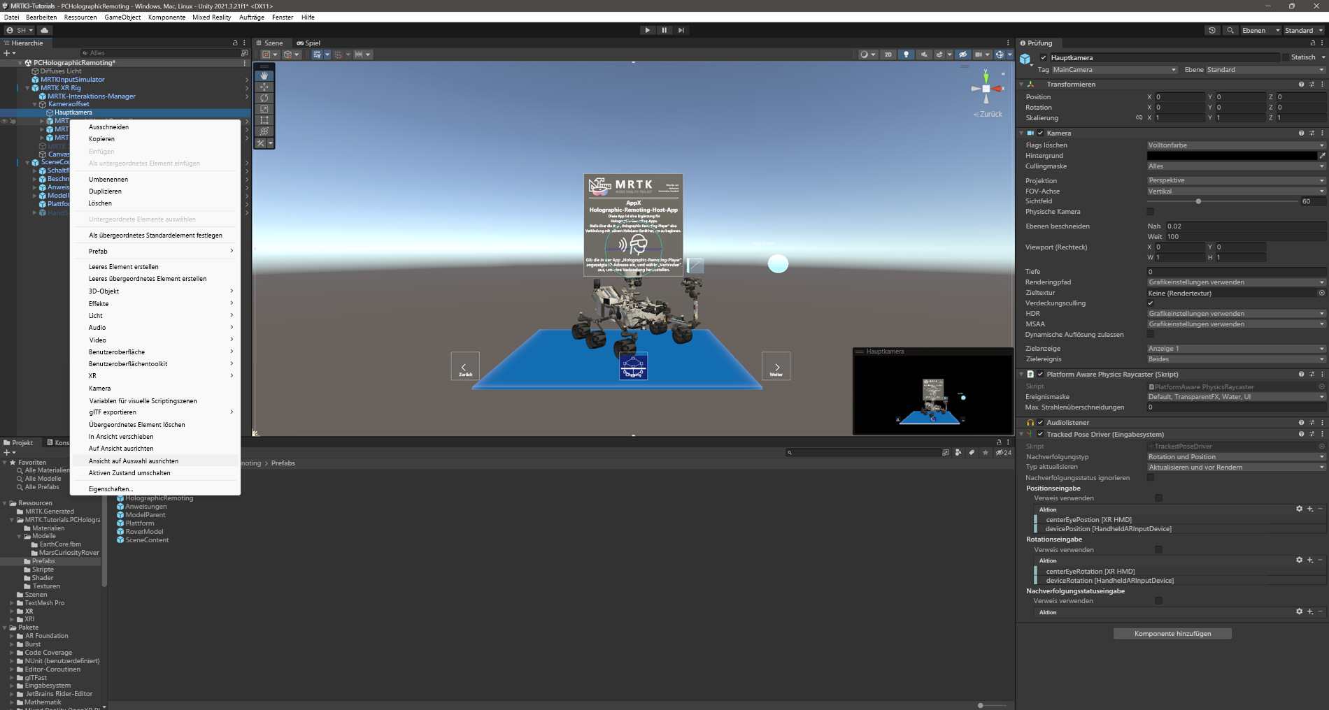 - Importierte das Mixed Reality Toolkit und konfigurierte das Unity-Projekt.