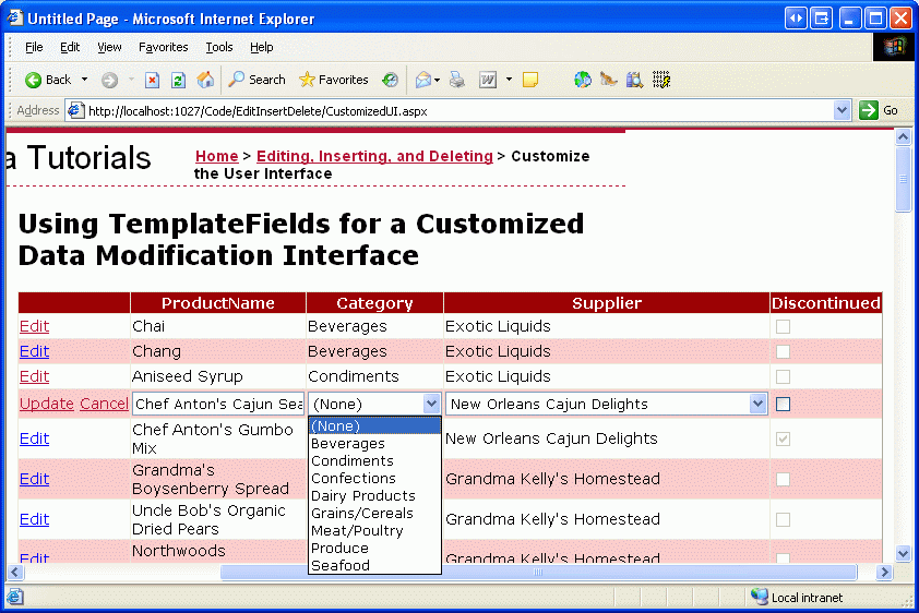 Step 3: Using a DropDownList for the Category and Supplier Editing Interfaces