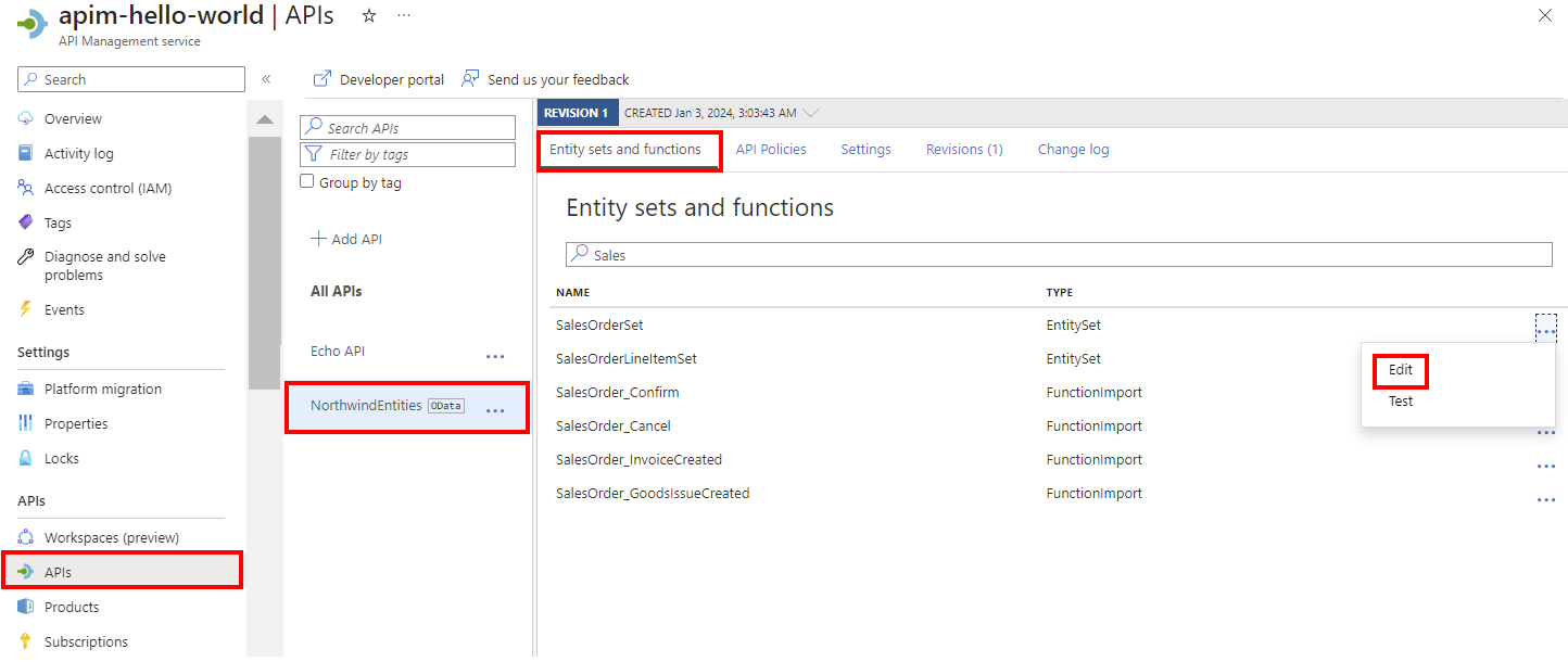 In the left menu, select APIs, and then select your OData API.