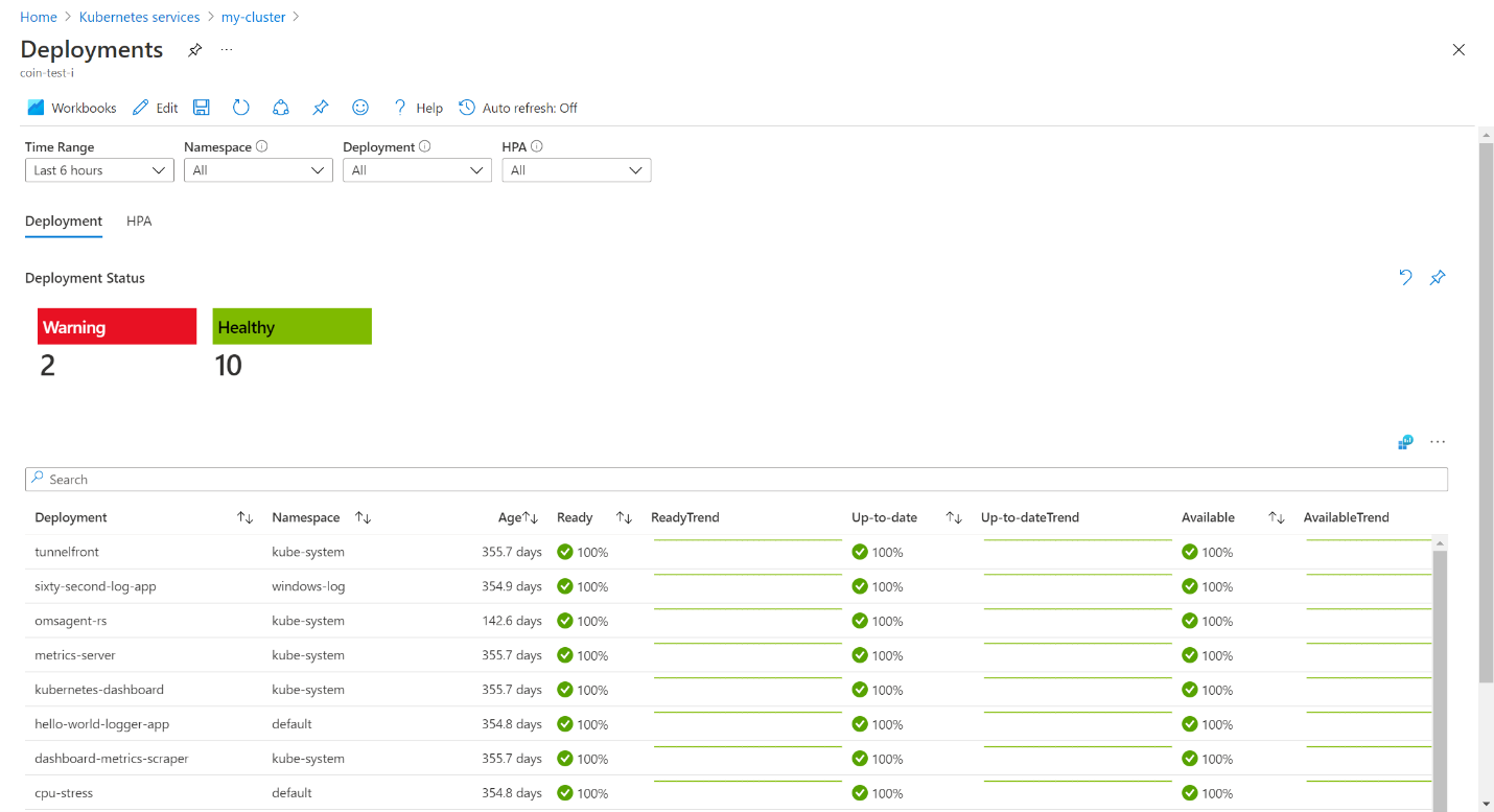 As an alternative, you can use the dedicated workbook that's documented in Deployment & HPA metrics with Container insights. Here's an example: