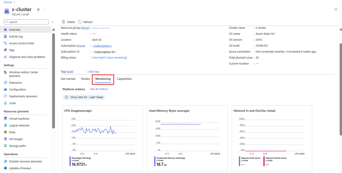 Monitor Azure Local through the Monitoring tab
