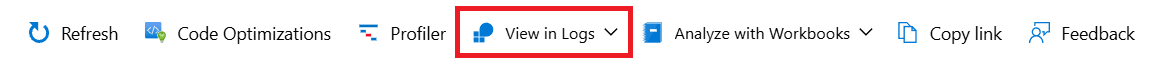 On either the performance, failures, or search view, select View in Logs in the top navigation bar and pick a query from the dropdown menu.