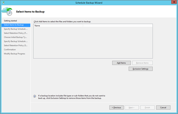 4. Under Select Items to Back up, select Add Items.